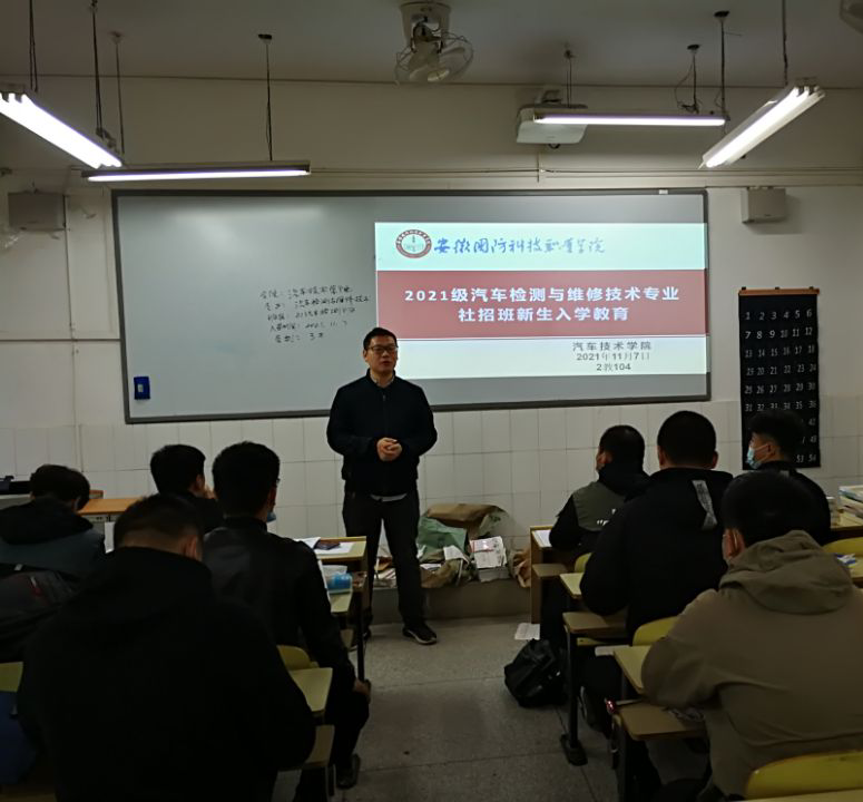 本网讯 汽车技术学院2021级扩招专业新生于11月7日在二教104教室报到。为做好2021级高职社会扩招新生的入学教育工作,明确立德树人的教育目标,培养优良的学风,汽车技术学院召开专题会议进行布置,制定社会人员扩招新生入学接待方案、报到流程和“开学第一课”实施方案,组织新生入学教育。新生报到期间,电子注册、信息填报、收费及建行登记办理、教学资源包发放、退伍军人手续办理、专业入学教育等各环节手续办理顺畅快捷,报到现场秩序井然,各项工作顺利开展。
