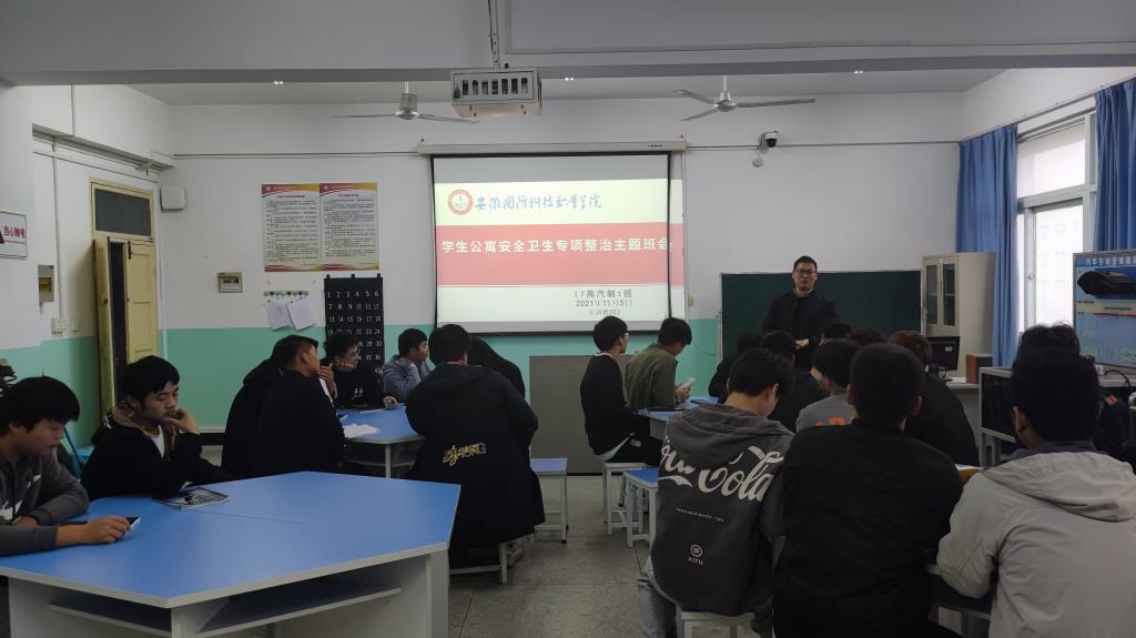 本网讯(汽车技术学院 朱其阳)为进一步强化学生的纪律意识和文明素养,引导同学养成良好的生活学习习惯,努力创建平安有序、文明和谐的公寓环境,根据学校《关于开展学生公寓安全卫生专项整治活动的通知》(校学函〔2021〕60号)文件精神和汽车技术学院辅导员班主任公寓专项整治专题工作会议的要求,汽车技术学院各班级班主任高度重视,认真组织开展了以“强化卫生整治,引领文明新风”为主题的主题教育活动。