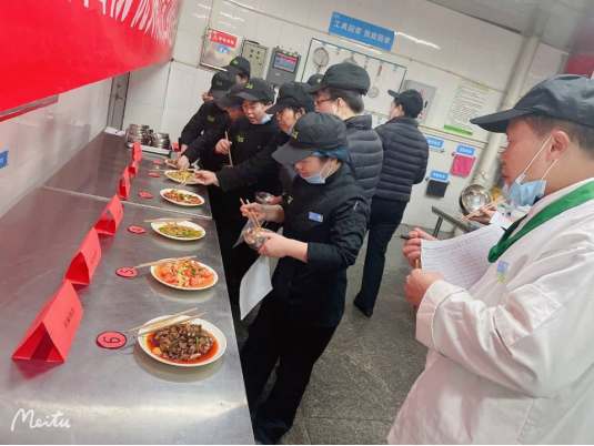 本网讯 11月25日下午,为了加强餐厅厨政队伍建设、稳定技术岗位人员、提升厨政产品制作技能水平,夯实餐厅自身实力,学校食堂蜀王优芙得餐厅举办首届员工技能大赛。餐厅红案师傅、风味档口人员、粗加工人员等参加比赛。