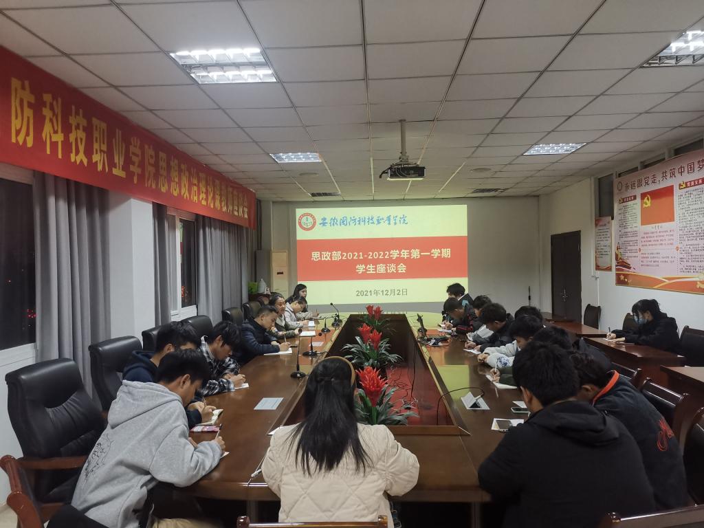 本网讯(思政部 韩玉英)为更好地了解学生对教育教学的工作意见和建议,加强教学建设、营造良好的学习氛围,思政部于12月2日在知行楼403会议室召开了2021-2022第一学期学生座谈会。座谈会由副主任陈思主持,思政部教师代表以及学生代表参加了座谈会。