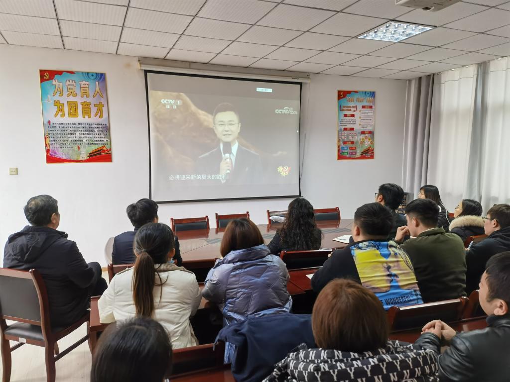 在一个多小时的观看过程中,全体师生认真聆听,仔细体会。英雄们的付出和奉献、爱国情怀让在座的师生感动不已。老师们纷纷表示,要向榜样学习,贯彻落实新时代党的教育方针,忠诚于教育事业,努力培养担当民族复兴大任的时代新人,培养德智体美劳全面发展的社会主义建设者和接班人。