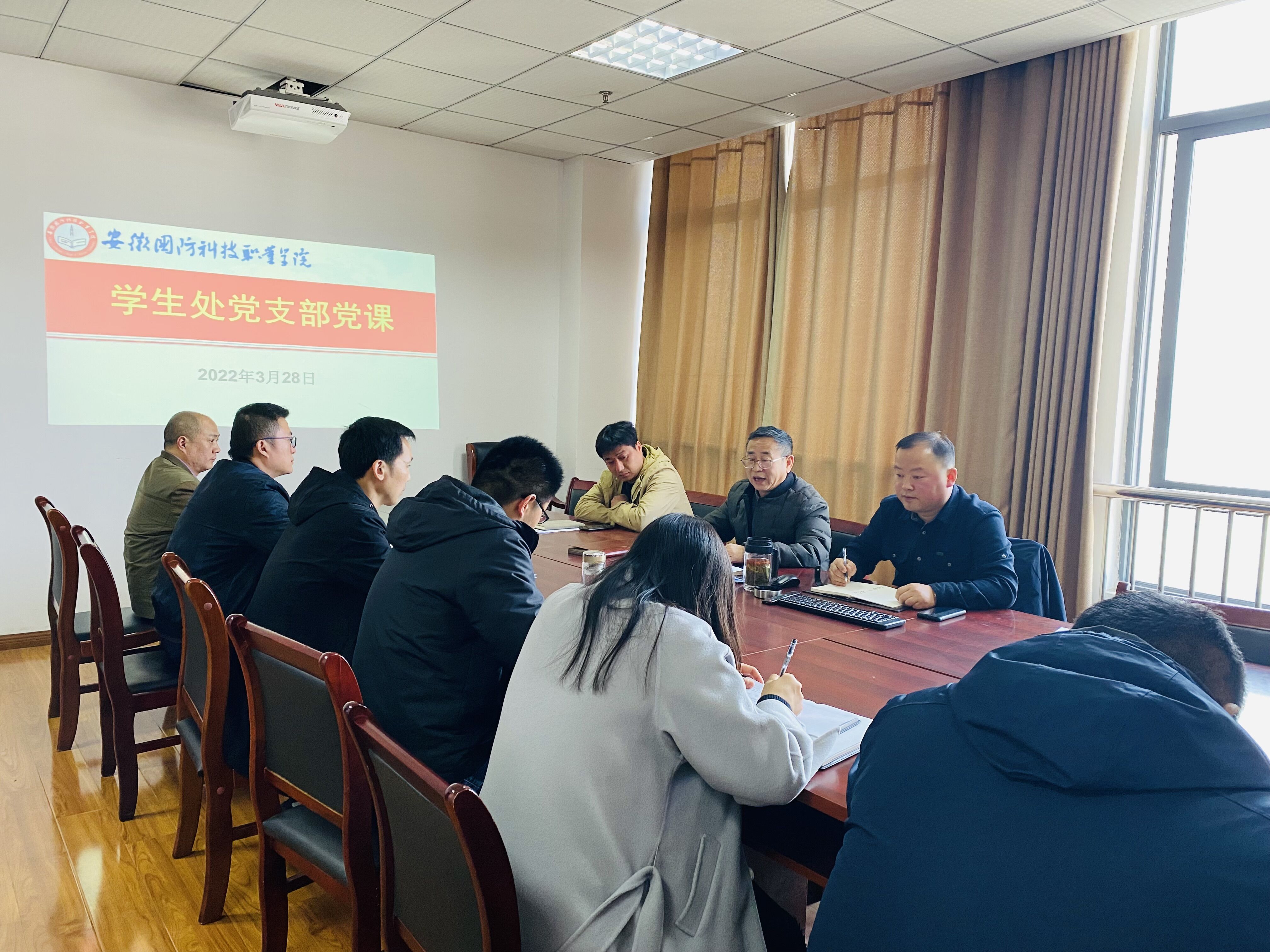 通过本次党课学习,学生处党支部全体党员纷纷表示要统一思想,振奋精神,凝聚力量,再接再厉,用更加扎实的工作作风做好学校疫情防控工作,充分发挥党员同志先锋模范作用,以实际行动和优异成绩迎接党的二十大胜利召开。