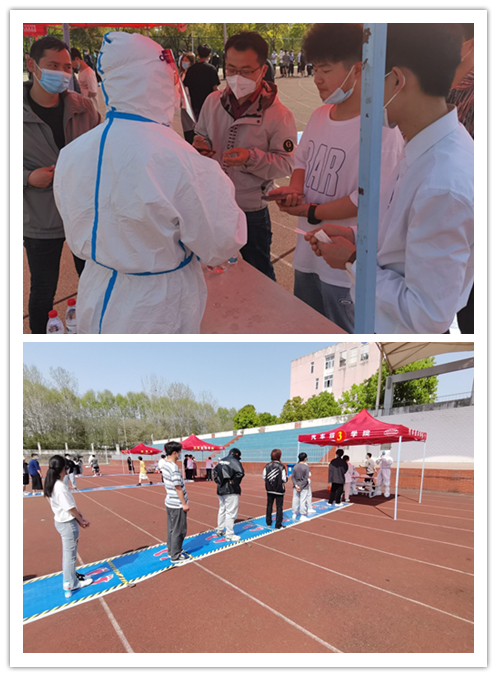 党员驻扎一线,有序组织核酸检测。临时党支部党员服从指挥、响应号召,克服困难、排除障碍,驻扎学校防疫一线,全身心投入到疫情防控工作中。每位党员包保2-3个班级的核酸检测组织工作,提前打印班级人员信息登记表,现场带队组织协调,按照规定时间段组织好包保班级在校学生集合,有序检测,并督促同学们及时在今日校园APP签到,确保无一遗漏。