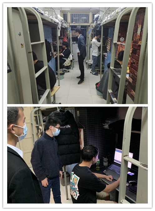 学工组深入宿舍,筑牢安全防线。全院41个在校班级,支部党员每人包保2-3个班级的宿舍,每日下沉一线,常态化深入班级、深入包保宿舍走访学生,疏导心理,了解学生思想动态和诉求,帮助解决困难。同时,掌握宿舍安全卫生等疫情防控具体情况,督促学生开窗通风,按时晨午晚检,按时上网课。对可能存在的安全隐患在督促、疏导的同时,及时反馈给班主任,由班主任督促整改落实后再反馈给党支部学工组,形成闭环。