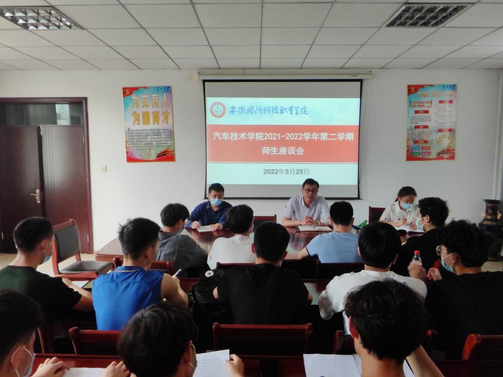 本网讯 为充分了解广大学生对学校教育教学管理服务和教学实施等方面的意见和建议,广泛调动学生参与管理的积极性和主动性,进一步增强汽车技术学院教学管理服务工作的针对性和实效性,5月25日下午,汽车技术学院召开2021-2022学年第二学期师生座谈会,汽车技术学院党总支副书记余桂刚、辅导员黄世超以及院属各班级学生代表参加会议,汽车技术学院团总支书记陈梦雅主持会议。