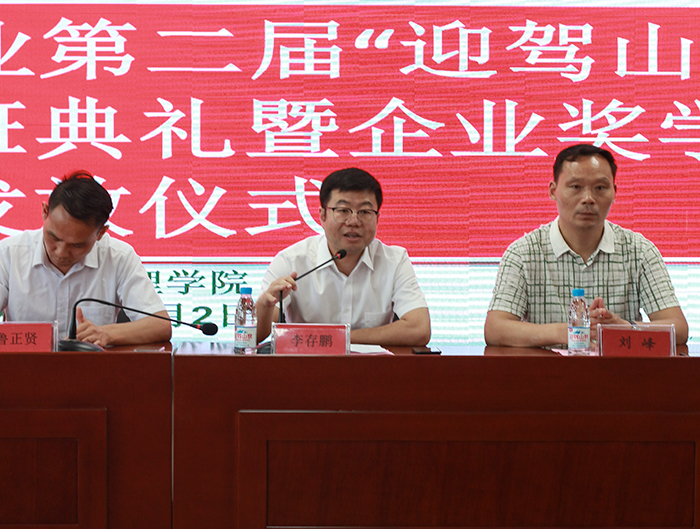 鲁正贤向在座嘉宾及学徒们介绍了安徽迎驾山泉股份有限公司的基本情况。他希望同学们抓住安徽迎驾山泉股份有限公司快速发展的机遇,在校努力学习专业知识,跟岗实习期间将所学知识融入到实践中去,要有吃苦耐劳的精神和不畏困难的决心。相信在学校、公司、学生三方的共同努力下,“迎驾山泉”学徒班的同学们定能成为公司的销售精英。