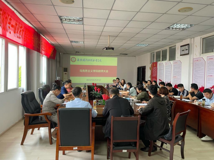 本网讯(马克思主义学院武晓璐)为了加强学院日常教学管理,确保教学稳定有序,8月31日下午,马克思主义学院在知行楼403会议室召开教师大会。会议由马克思主义学院副院长聂勇主持,校党委委员、宣传部部长、马克思主义学院院长陈思及全体授课教师参会。
