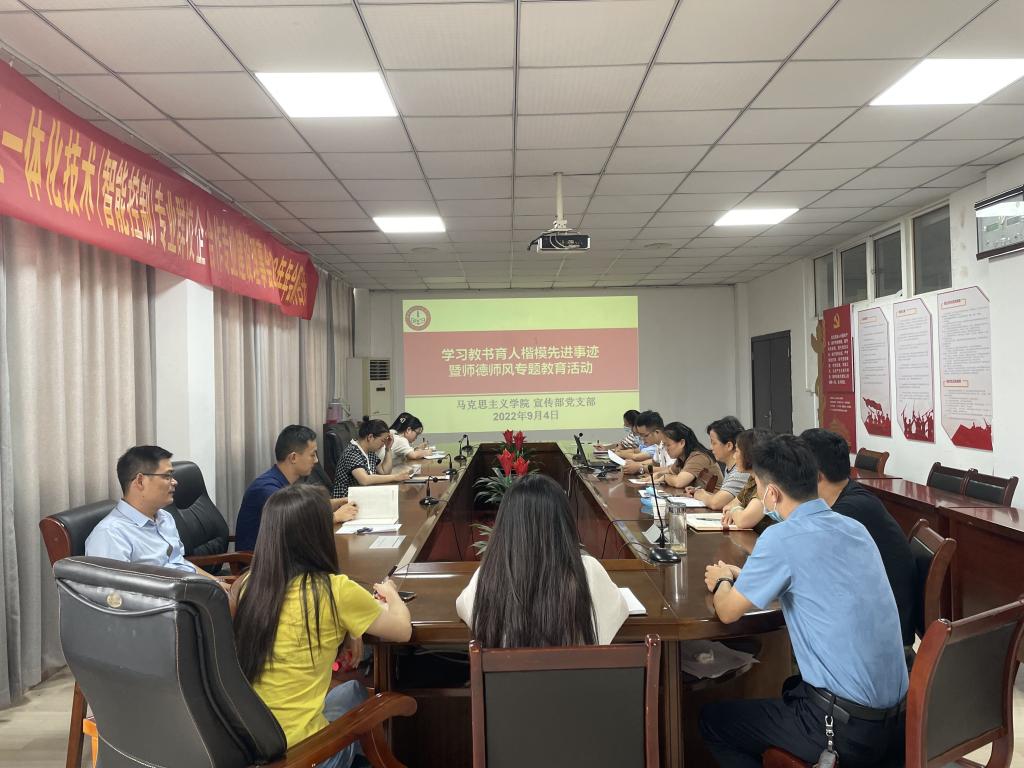 首先,宣传部副部长朱其阳向大家传达了《中共安徽省委教育工委安徽省教育厅关于开展向2022年度全省教书育人楷模学习活动的通知》的文件精神,领学了蒋伟、鲍俊瑶等老师教书育人楷模的先进事迹,并结合《新时代教师职业行为十项准则》学习内容,号召全体教师严于律己、敬业爱生。