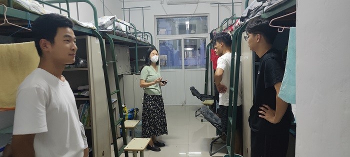 在走访过程中,王胜书记一行人查看了学生的住宿条件,认真询问新生到校后的生活情况,仔细了解同学们来校后的心理状态,鼓励同学们合理安排学习和生活,认真学习专业知识,利用好学校这个平台提高素质、增长才干。细心叮嘱同学们要注意宿舍用电安全,避免发生用电起火等情况;并提醒同学们一定做好宿舍消杀工作,定期通风,做好个人防护。
