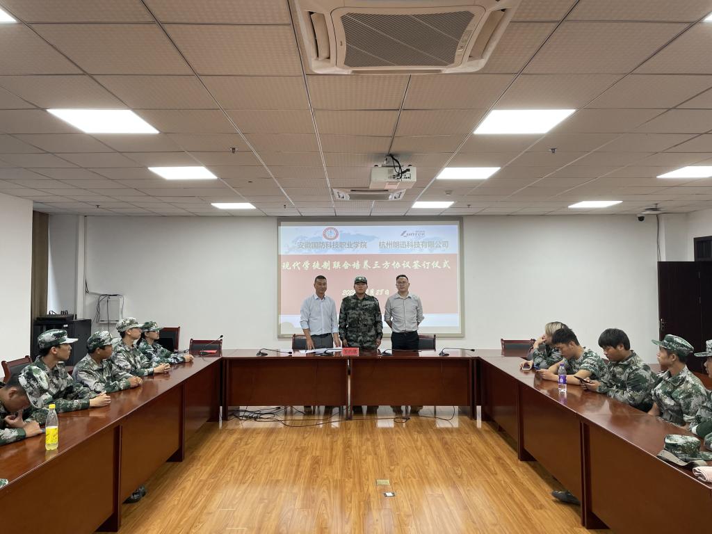 根据校企合作框架协议,校企双方开展现代学徒制人才培养,在2022级集成电路技术专业学生中遴选学员,并组建了朗迅现代学徒制班,企业、学校和学生三方签订了学徒制联合培养三方协议。通过开展现代学徒制联合培养,校企双方推进现代学徒制人才培养模式改革,共同制定人才培养方案,在学习期间,就使学生完成从“学生”到“职工”的转变,不仅全面提升学生的职业素养和专业技能,增强学生的职业竞争力,更能深入培养学生的劳动精神、职业精神和工匠精神。