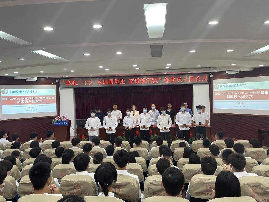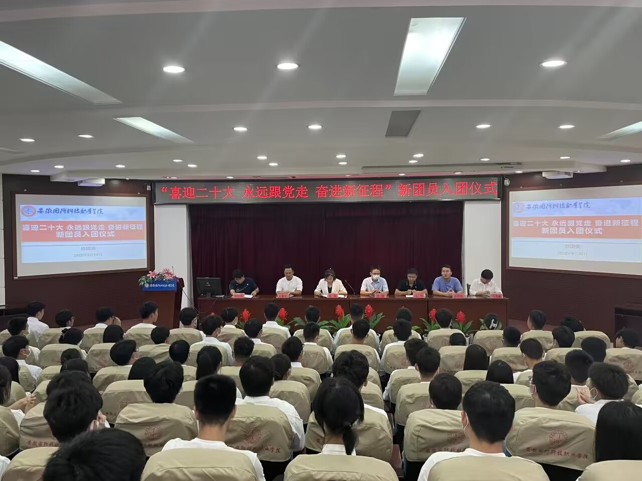 本网讯(团委 罗丞筠)为迎接党的二十大胜利召开,贯彻建团百年大会精神,培育有理想、有本领、有担当的社会主义建设者和接班人,为团组织注入新鲜血液,9月30日下午,校团委在图书馆报告厅组织2022年新团员集中入团仪式,校团委副书记张凤、各学院团总支书记、团委老师出席仪式,50余名新老团员参与仪式,会议由校素质拓展中心主任罗丞筠主持。