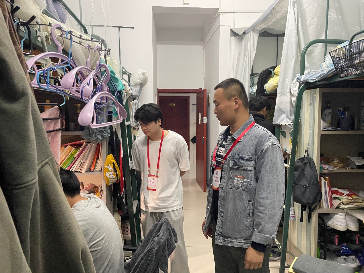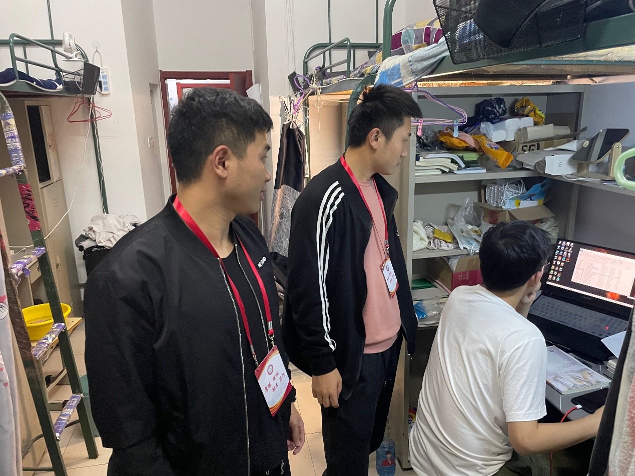11月10日晚,学生党员朱帅等人作为网格员,进行寝室安全,宿舍卫生,用水用电的检查。查寝过程中,学生党员详细询问寝室学生学习生活上存在的困难和需求,并与寝室同学共同探讨如何保持寝室卫生、打造最美寝室。