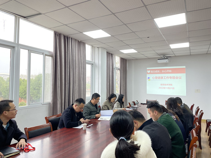 本网讯(信息技术学院马士君)根据学校心理健康中心的工作安排,为了科学地认识和分析2022级大学生心理普测结果,持续做好后续的跟踪回访工作,11月21日上午8:20,信息技术学院在知行楼304会议室召开了心理健康工作专题会议。学院党总支书记王胜、副书记杨庆颖以及2022级全体新生班辅导员参加了此次会议。会议由学院心理辅导员马士君主持。