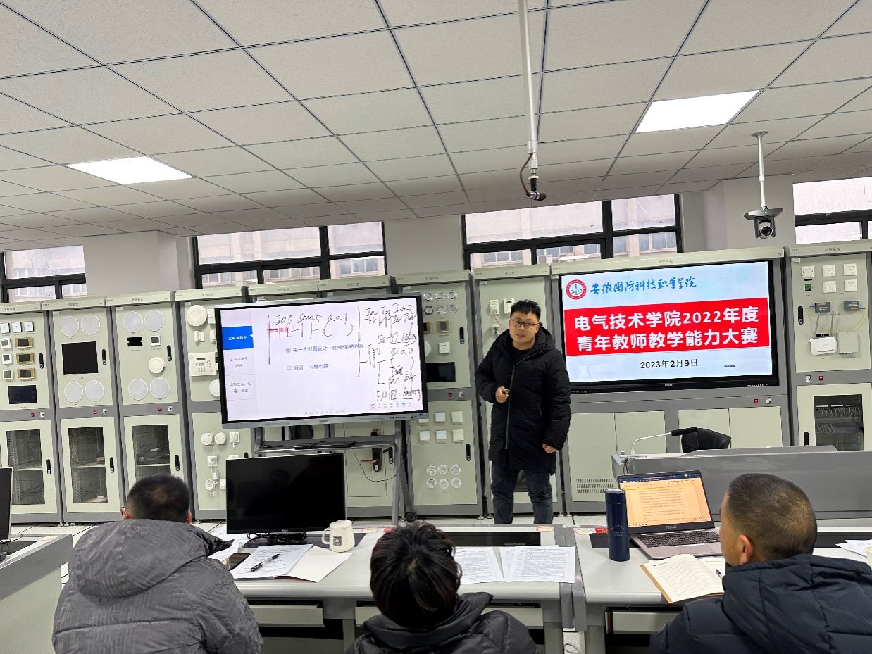 2月9日下午,电气技术学院在秉心楼402实验室举办了青年教师教学技能大赛,金玉好等8名青年教师同台竞技,展开激烈角逐。电气技术学院副院长江治国、电气技术学院资深教师王丽、尹晶晶、吴年祥、邹莉、耿婧担任本次比赛的评委,电气技术学院全体专业教师现场观摩。