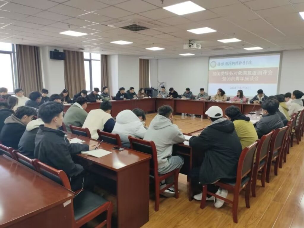 本网讯(校团委 罗丞筠)2月15日下午,校团委在秉心楼9楼会议室召开服务对象满意度测评会暨团员青年座谈会。校团委副书记张凤现场汇报2022年全校共青团工作,各二级学院、班级等基层团组织书记和团员青年代表共38人参加会议,并在现场进行满意度评价。