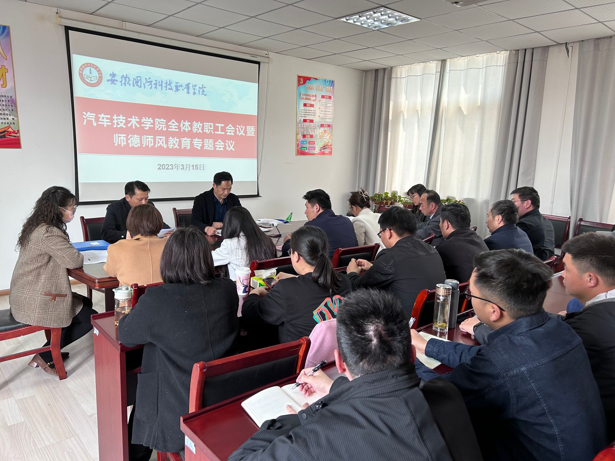 本网讯 为深入贯彻落实习近平总书记关于教育的重要论述,落实立德树人根本任务,加强师德师风建设,3月15日下午,汽车技术学院召开全体教职工会议,开展师德师风专题教育。会议由党总支书记、院长孙良平主持,全体教职工参加会议。
