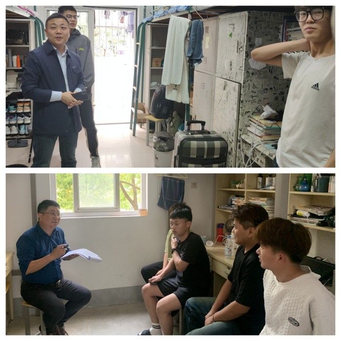 期间,学院领导和老师们仔细检查了学生宿舍有无违反学校宿舍管理规定的情况,提醒、告知同学们要注意假期人身、交通、财产及宿舍水电等安全事项,并祝福同学们度过一个快乐、充实、平安、祥和的假期。在走访过程中,沙有闯要求同学们进一步加强宿舍安全意识,提醒同学们严格遵守宿舍管理规定,共同创造安全健康、舒适和谐的宿舍环境。王胜叮嘱离校同学如实、及时填写今日校园假期去向信息,告知并征得家长同意,注意在外安全事项,时时向家长、老师报告平安,规划好返校时间、线路,按时回校上课;告知留校同学,合理规划在校学习、生活和户外运动,严格遵守学校各项规定,特别是住宿规定,按时归寝、就寝,注意消防安全,严禁在宿舍内使用大功率电器、使用明火等行为,杜绝卧床抽烟、私拉电线、饲养宠物等行为。
