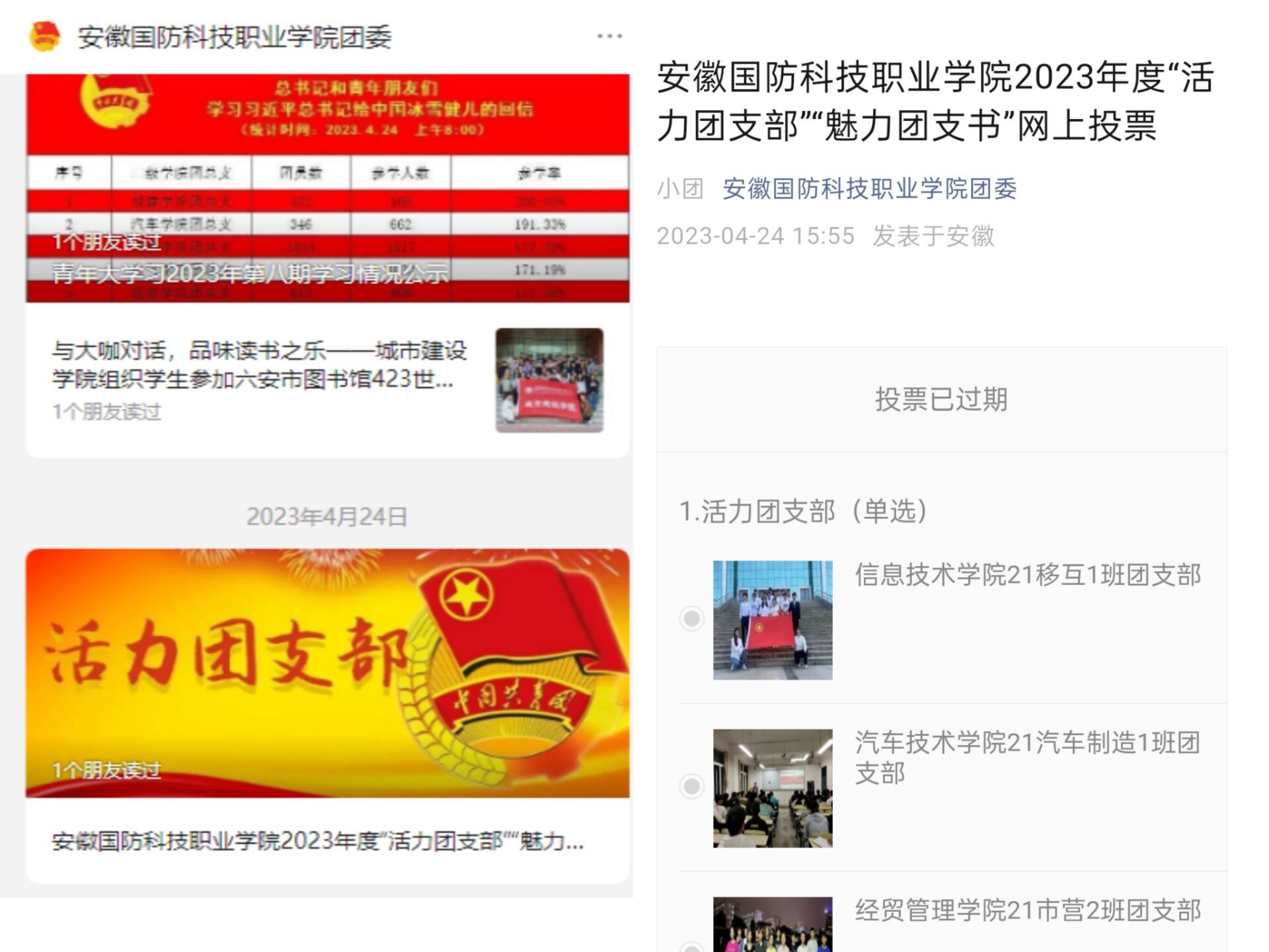 校团委微信公众号网络投票环节