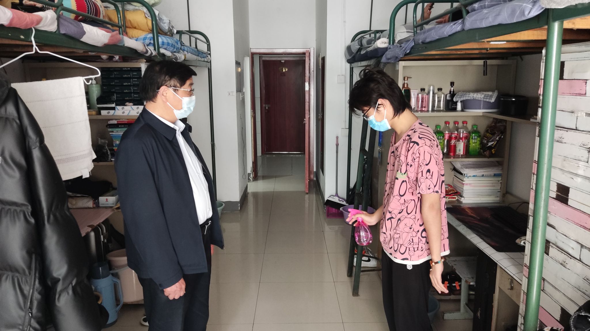 此外,在检查的过程中各位老师与同学们进行了面对面交谈,希望同学们严格遵守学校疫情防控的各项要求,养成良好的生活作息;叮嘱同学们注意安全用水用电,强化安全意识;鼓励同学们养成良好学习、卫生和文明习惯,树立展青春,有活力,讲文明的大学生形象。对检查中存在的不文明现象,存在的安全隐患,对同学们进行耐心的讲解并督促其及时改正。