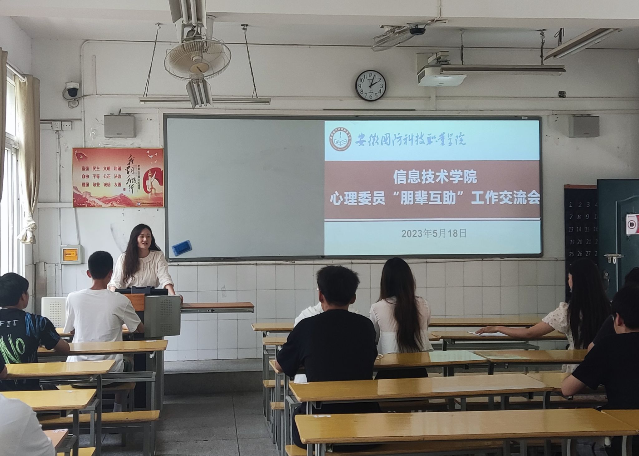 会议首先,马士君老师带领大家学习了《关于开展第十八届大学生心理健康节活动的通知》(校马院函〔2023〕15号)文件精神,并结合《信息技术学院第十八届大学生心理健康节活动实施方案》,对学院第十八届大学生心理健康节活动的开展进行了详细安排和布置。同时,宣读了《关于表彰2021-2022学年优秀心理委员的决定》(校马院函〔2022〕29号),希望学院全体心理委员以优秀心理委员为榜样,勤奋务实,开拓创新,尽职尽责做好班级心理工作。
