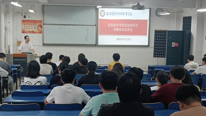 本网讯(信息技术学院 黄双河)为强化当代学生的诚信意识,培养学生的诚信品质,普及宣传金融知识,全面提升大学生综合素养,让学生们懂得如何预防金融诈骗、电信诈骗等。5月31日,我院资助辅导员开展专题讲座,院属各班级学生代表100多名学生积极参加。