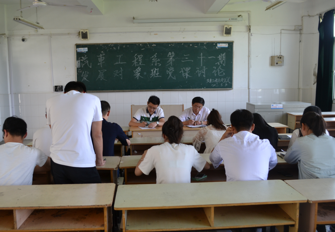 为进一步端正入党动机,加强对党的认识,巩固高级党课的学习内容,2017年5月10日,汽车工程系党总支分别在2教307、308教室召开发展对象班分组讨论会。参加此次讨论会的有汽车工程系党总支书记李维革、副书记叶启衡、13级辅导员朱其阳、14级辅导员戴柳及28名发展对象班学员。