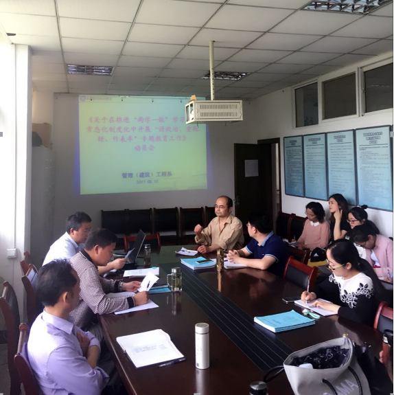 为推进“两学一做”学习教育常态化制度化贯彻落实工作,按照“三个一”活动安排,5月10日管理(建筑)工程系党总支召开开展“两学一做”教育常态化、制度化学习专题学习研讨活动,全体师生党员参加学习,系党总支书记杜先扬主持会议。
