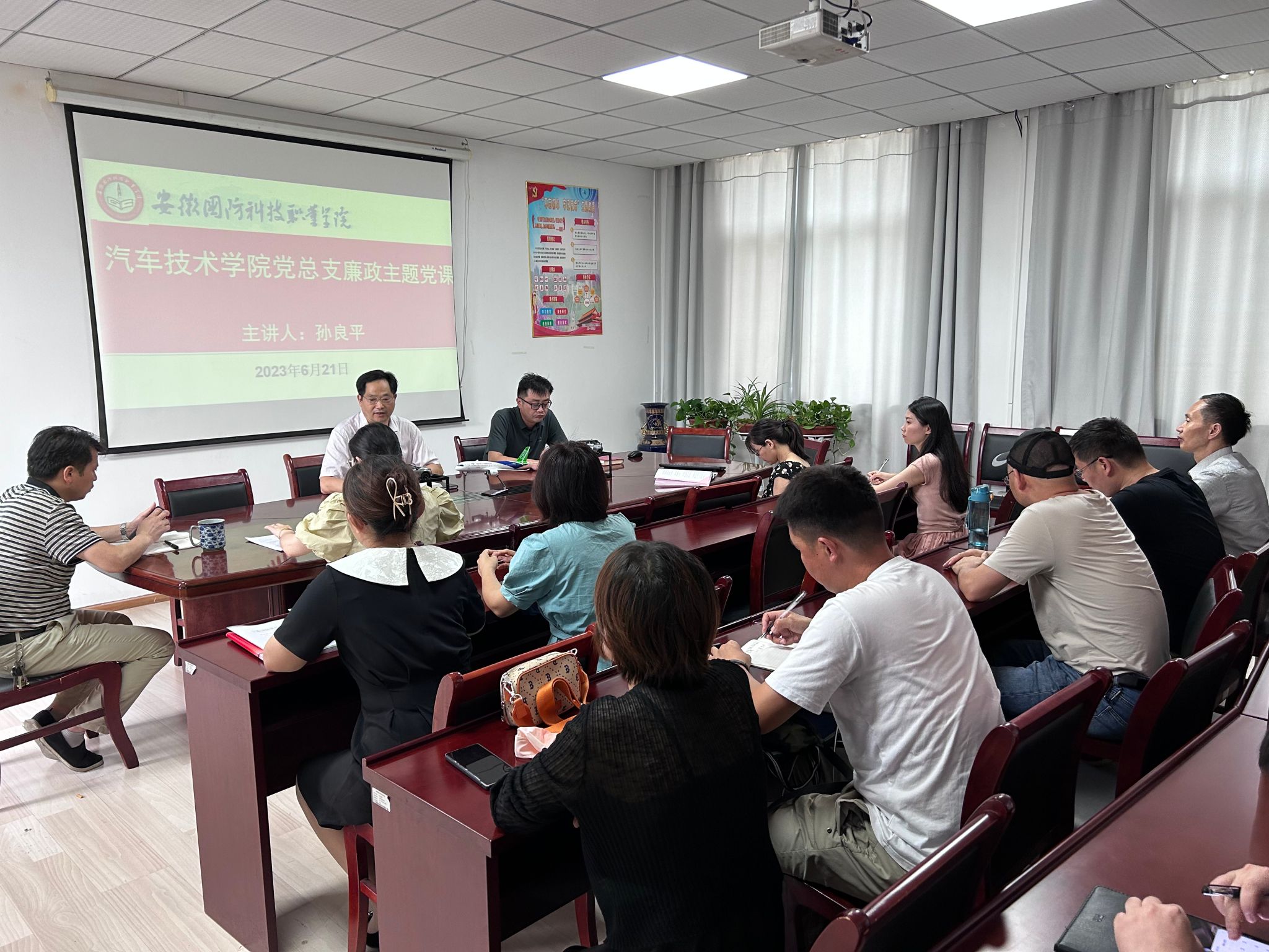 本网讯 为深入贯彻落实党的二十大精神,教育广大党员干部筑牢拒腐防变思想防线,弘扬清风正气,6月21日下午,汽车技术学院党总支开展廉政主题党课。学院党总支书记、院长孙良平围绕习近平总书记关于反腐败斗争、党的伟大自我革命等重要论述,向全体党员讲授廉政主题党课。