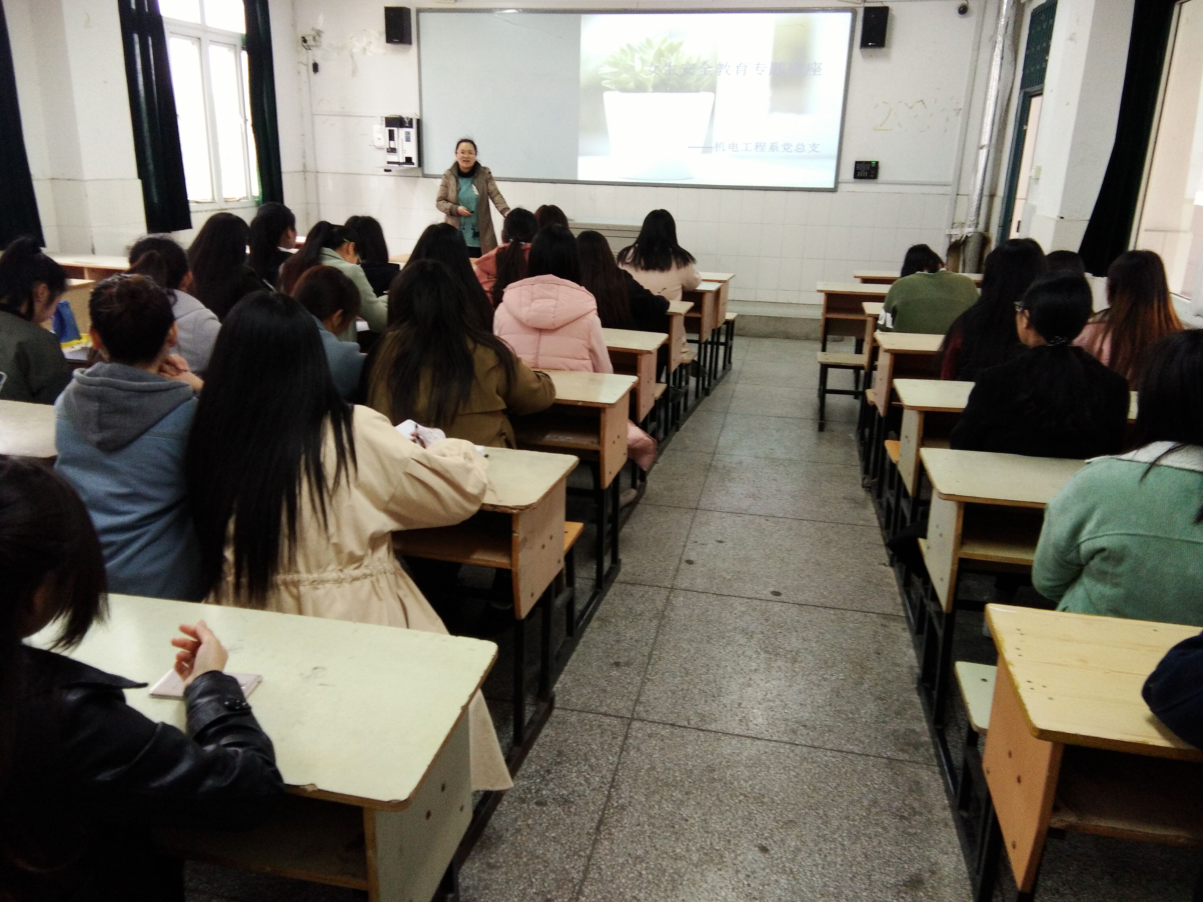 为增强女生心理健康教育,提高女生自救自护能力,促进广大女生身心健康发展,3月15日下午,机电工程系举办女生安全知识讲座。本次讲座由机电工程系16级辅导员汤晓莉主讲。