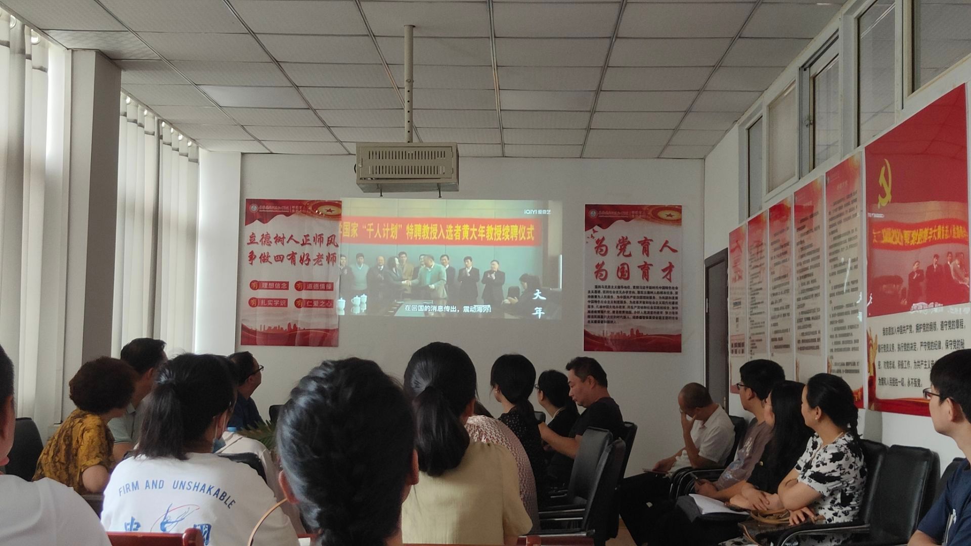 会上,院长杨力宣讲了《学校师德师风集中学习教育整治工作方案》,传达了学校专题会议精神。与会人员集中观看了《黄大年》,影片真实再现了著名战略科学家、时代楷模、吉林大学教授黄大年同志心有大我、至诚报国、教书育人、敢为人先、淡泊名利、甘于奉献短暂而精彩的一生,他至高至上的爱国情怀深深的感染和震撼着每一位教师。