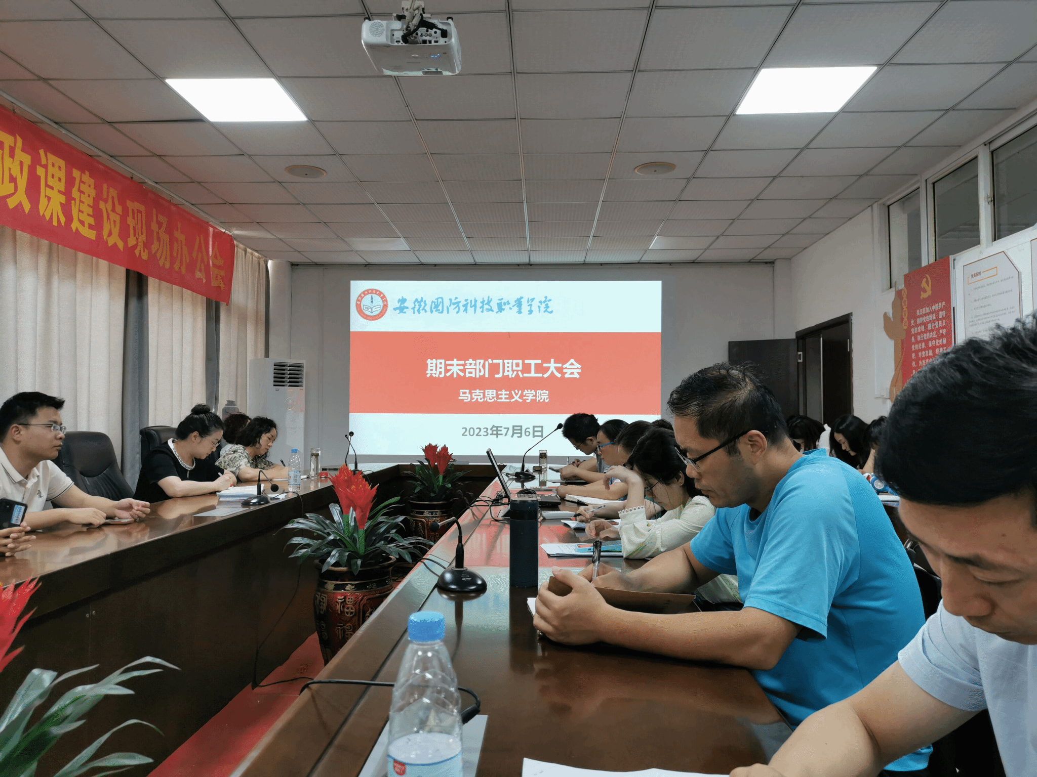 本网讯(马克思主义学院 张艳华)为进一步加强师德师风教育,保障和推进期末工作有序进行,7月6日下午,马克思主义学院在知行楼403会议室召开师德师风学习教育大会暨期末部门职工大会。会议由校党委委员、宣传部部长、马克思主义学院院长陈思主持,马克思主义学院全体教职工参加。