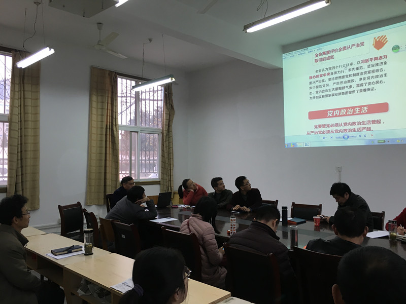 会上,系党总支副书记陈思用PPT形式带领大家一起学习党的十八届六中全会精神。主要内容有:“数读”十八届六中全会公报、《关于新形势下党内政治生活的若干准则》主要内容、15句话明确六中全会对全体党员干部的要求、六中全会对全面从严治党九个新提法、六中全会四大关键词等。