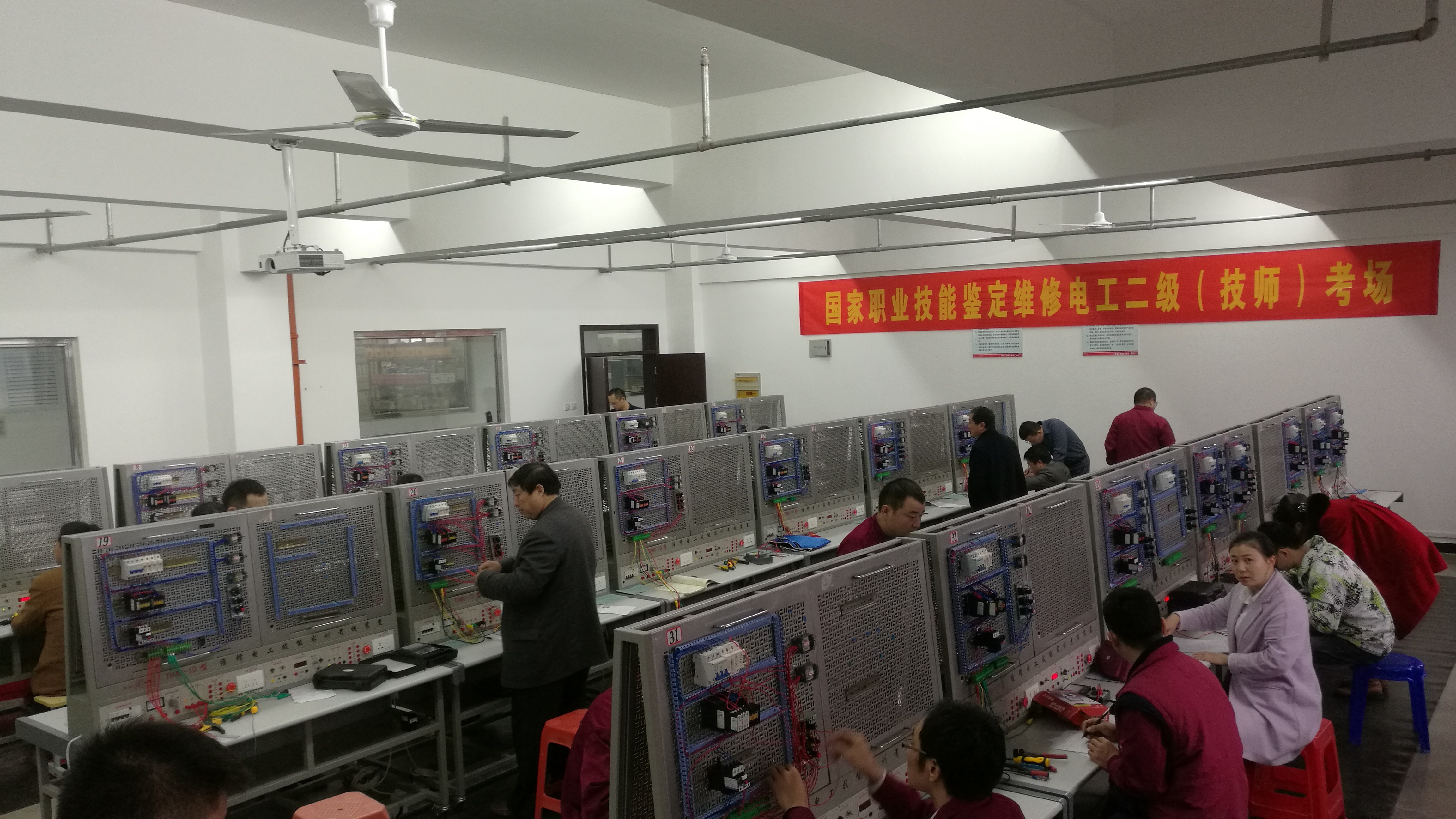 2016年 11月19日至20日,机电工程系电工电子与自动化技术省级示范中心顺利完成2016年下半年国家职业资格维修电工统一考试的鉴定工作。其中维修电工高级技师(一级)7人,技师(二级)38人,高级工(三级)153人。机电工程系对此次国家职业技能鉴定工作非常重视, 组织了这次参加维修电工(高级)考证的相关班主任,专业培训教师及后勤保障教师的会议,明确安全意识、教学任务,按考核要求强化技能训练。在鉴定考试前,beat365技能鉴定所又组织所有考务人员、工作人员及相关科室负责人的协调会议,强调工作规程,明确工作责任,严肃考场纪律,确保考试的顺利进行。