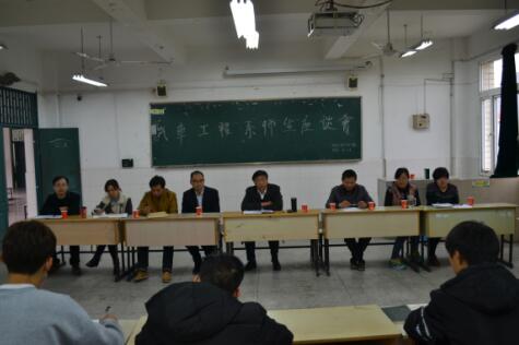 为了更好地推进系部教风、学风建设,全面了解汽车工程系各班学生的学习、生活状况,促进师生间的交流与互动,汽车工程系于11月16日下午两点半在二号教学楼306、307教室分别召开了师生座谈会,会议由系书记李维革老师和副书记叶启衡老师主持,全体专业教师及班级学生代表参加了此次座谈会。