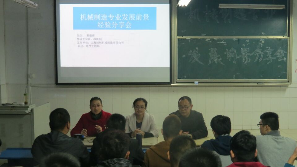 黄倩倩首先就服务的企业介绍了自己的岗位职责及工作环境,并结合自己的工作体会向同学们详细介绍了机械制造专业所学的专业知识在工作中的具体运用。她还就中国制造2025给我国制造业带来的机遇和挑战阐述了今后机械类学生的发展方向以及发展前景。最后黄倩倩还向同学们分享了一些学习方法。