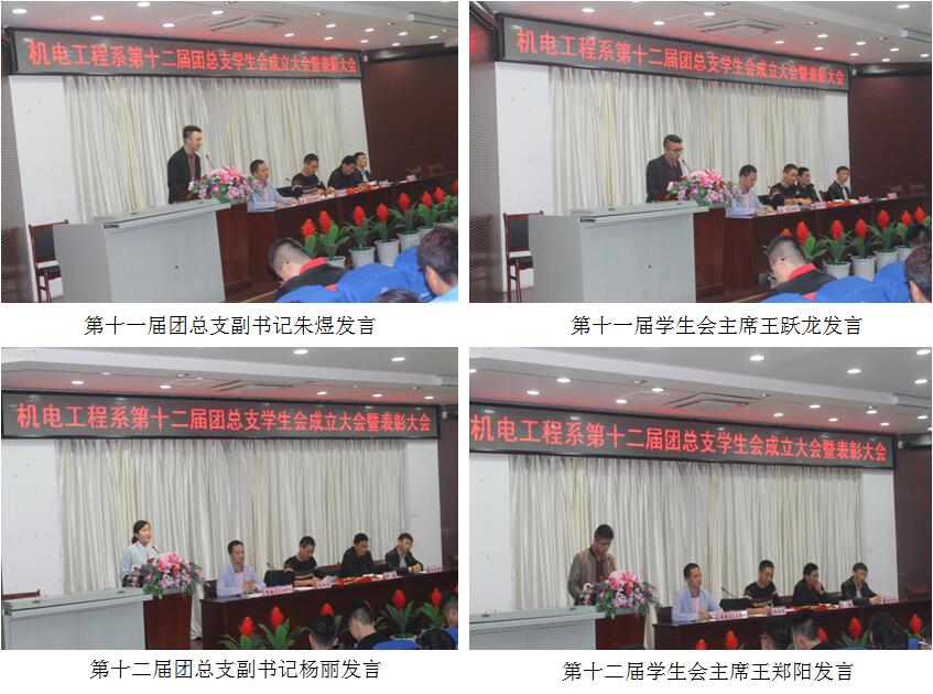 十一届团总支副书记朱煜,学生会主席王跃龙分别在大会发言阐述了自己的心得和如何处理好学习与工作关系的同时提高工作效率。十二届团总支副书记杨丽,学生会主席王郑阳分别在发言中表示要强化团总支学生会内部建设,完善外部形象的建设,加强学生会沟通交流等。