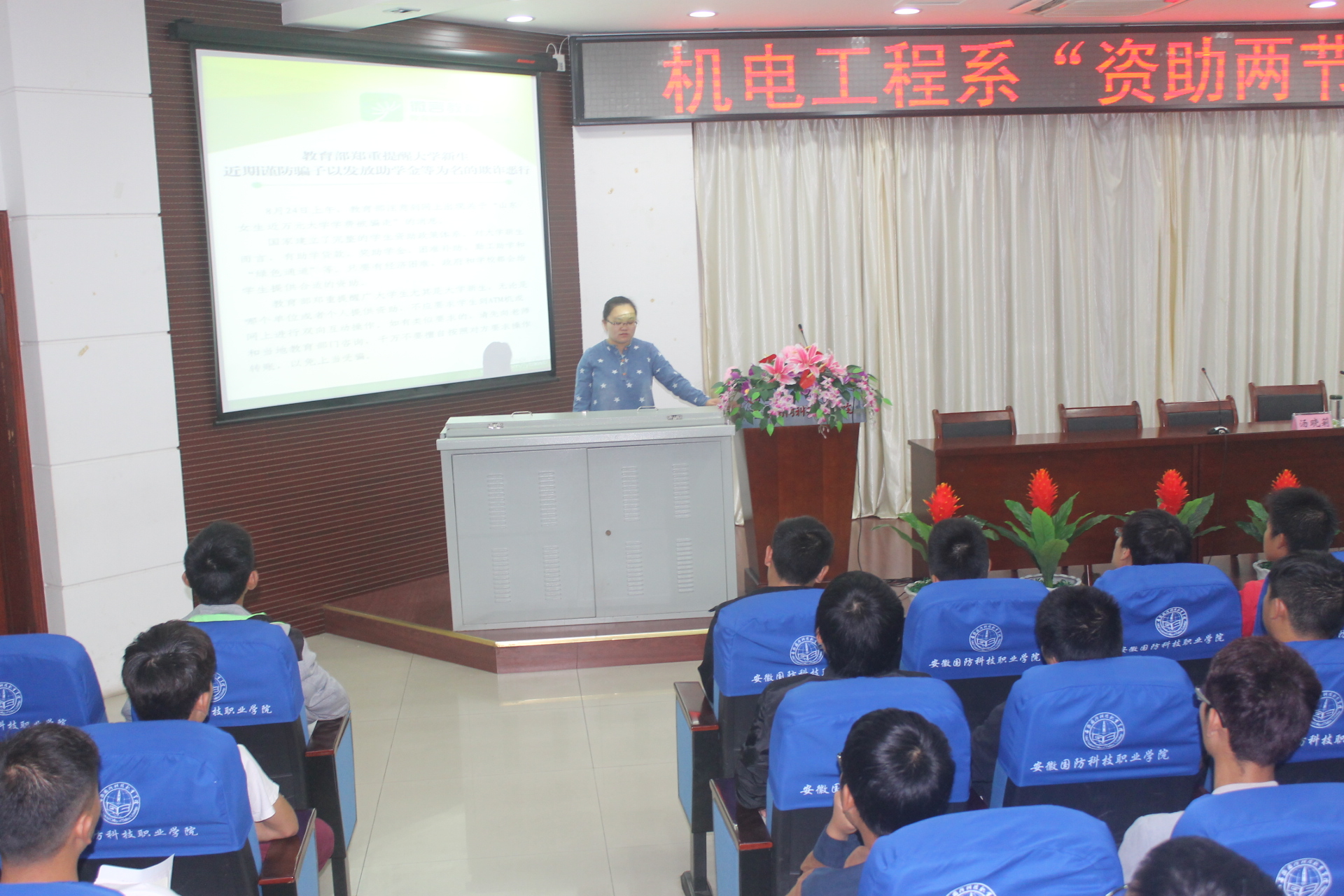 机电工程系学生资助政策宣讲“两节课”活动由系资助专职教师汤晓莉老师主讲。汤老师全面宣讲在校学习期间国家及学校出台的本学段各项资助政策及具体的申请、发放操作办法,确保家庭经济困难学生在校期间得到有效资助。