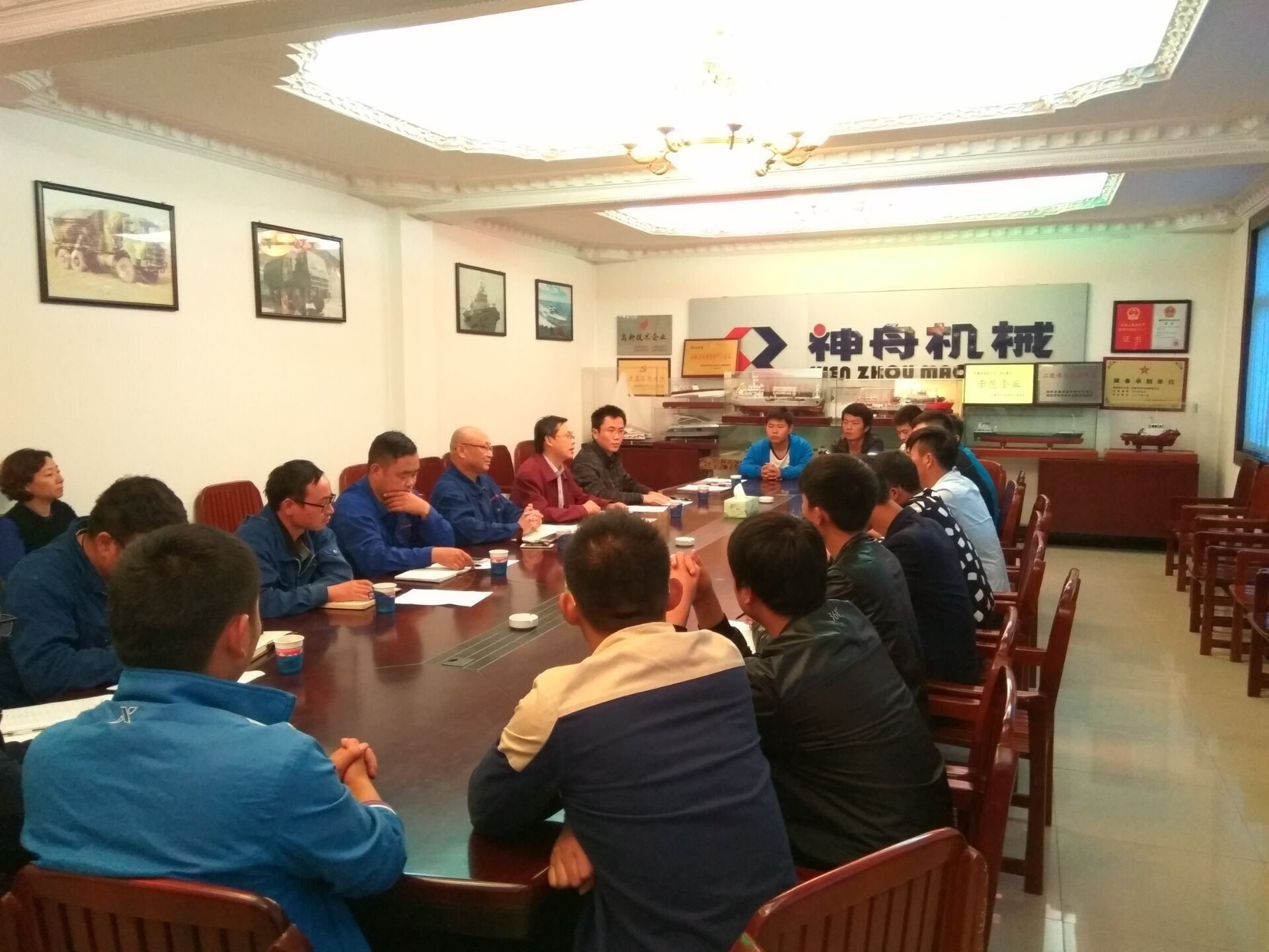 10月13日,机电工程系副主任李翔、船电专业工学结合实习指导老师程坤、14级辅导员侯超众一行赴校企合作企业--蚌埠神舟机械有限公司参加2014级船舶电子电气技术专业工学结合实习工作总结表彰会。会议在神舟公司的二楼会议室进行,会议由神舟机械有限公司副总经理吴长宁主持,2014级船电专业学生参会。