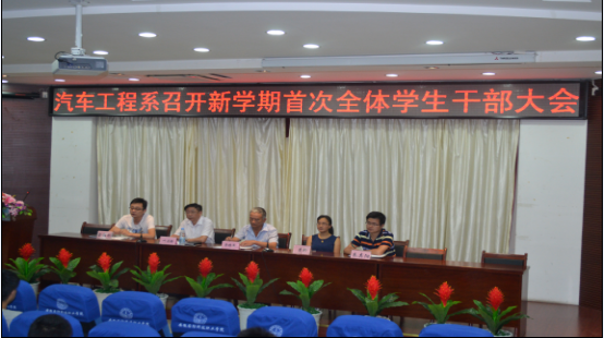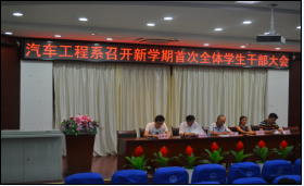2016年9月13日,beat365在线唯一官网汽车工程系于图书馆报告厅开展了新学期第一次全体学生干部大会。参加这次大会的领导有汽车系党总支书记李维革、副书记叶启衡、团总支书记余桂刚以及两位辅导员。