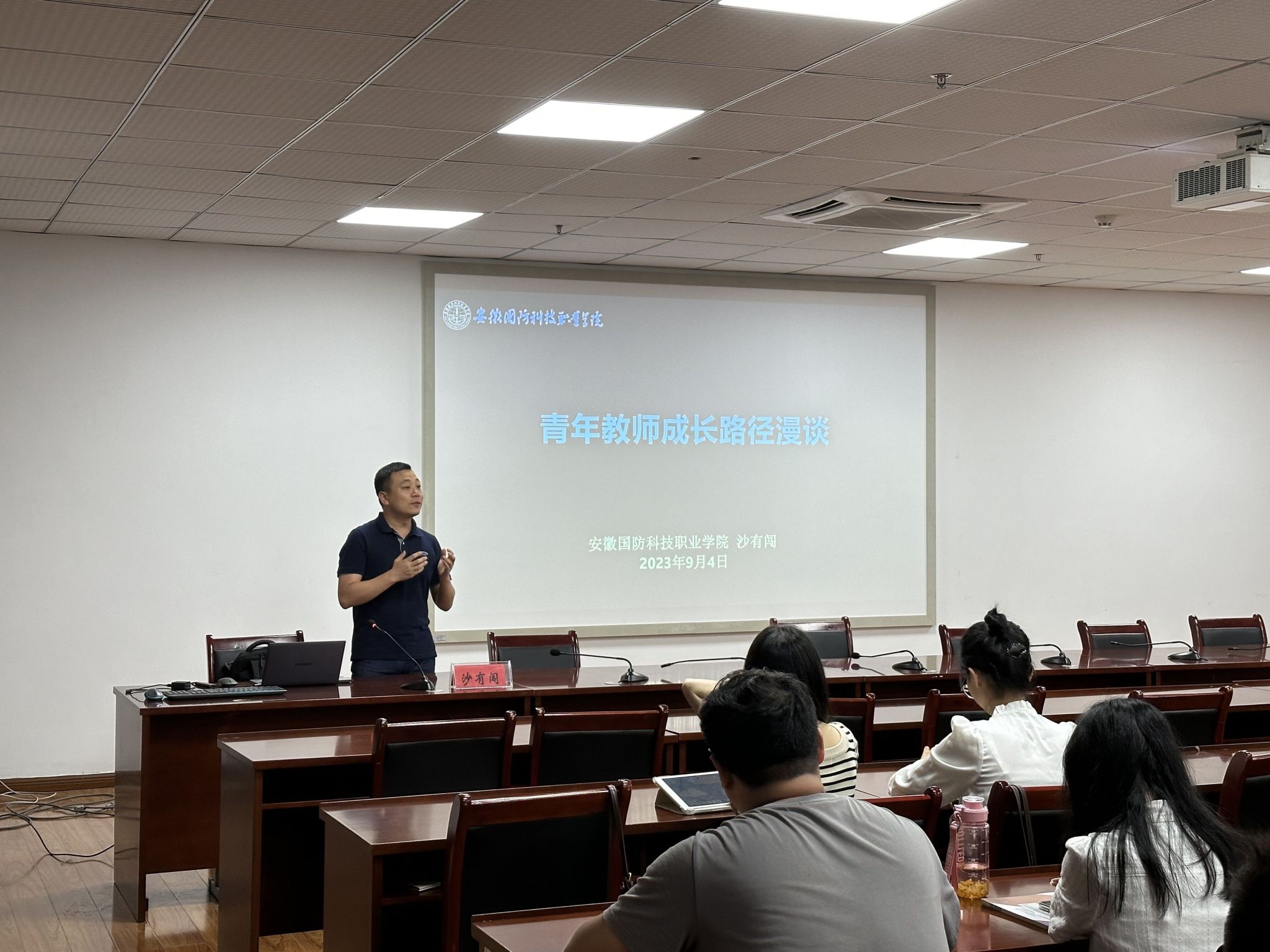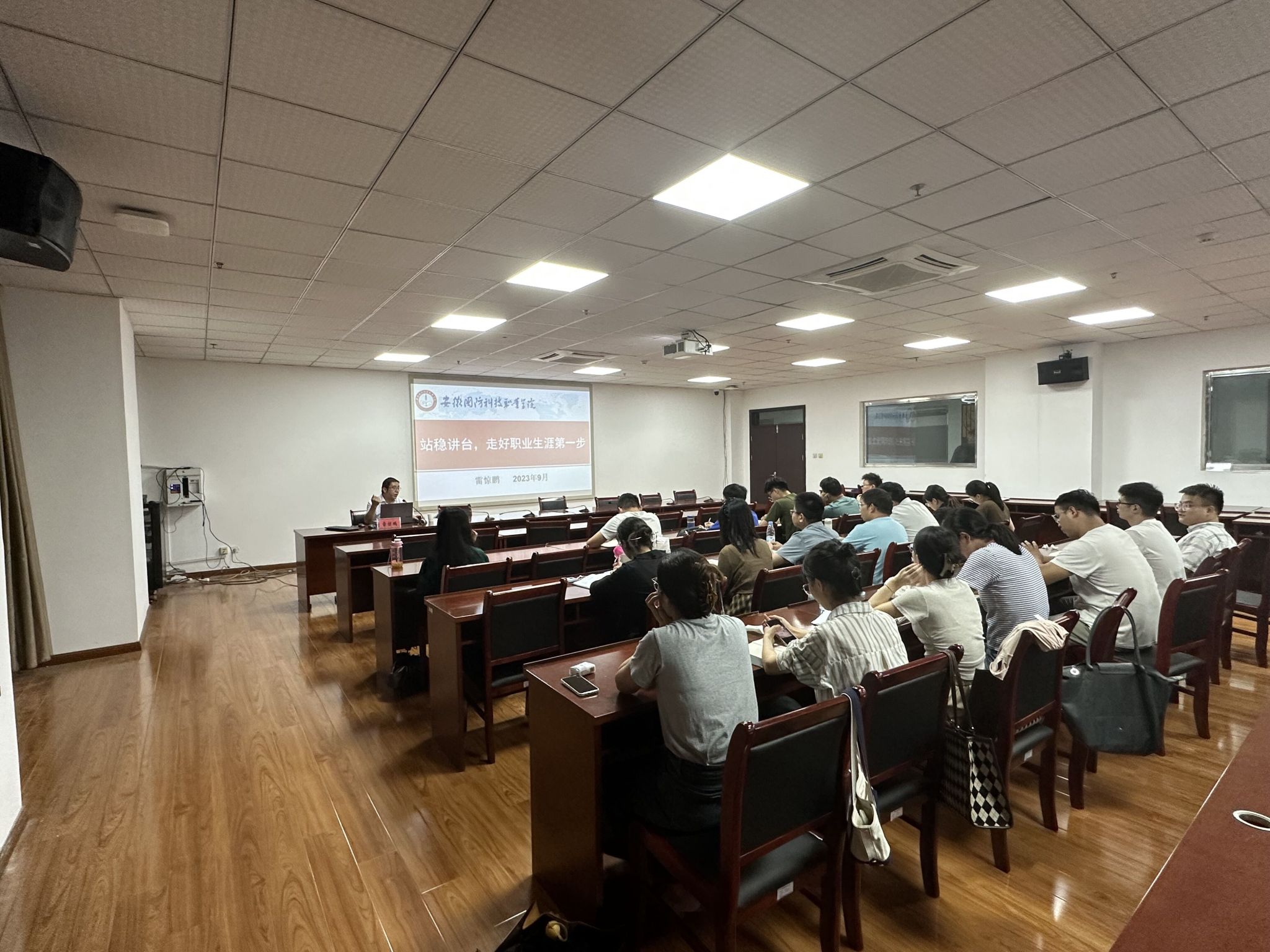 信息技术学院副院长雷惊鹏在教学基本工作规范上进行了详细说明,向青年教师解读了《安徽省普通高校基本教学活动标准化建设标准》、学校关于课堂教学管理、教学事故认定与处理、教师教学工作基本规范等文件,并分析了备课、授课、评价等方面应注意的问题。