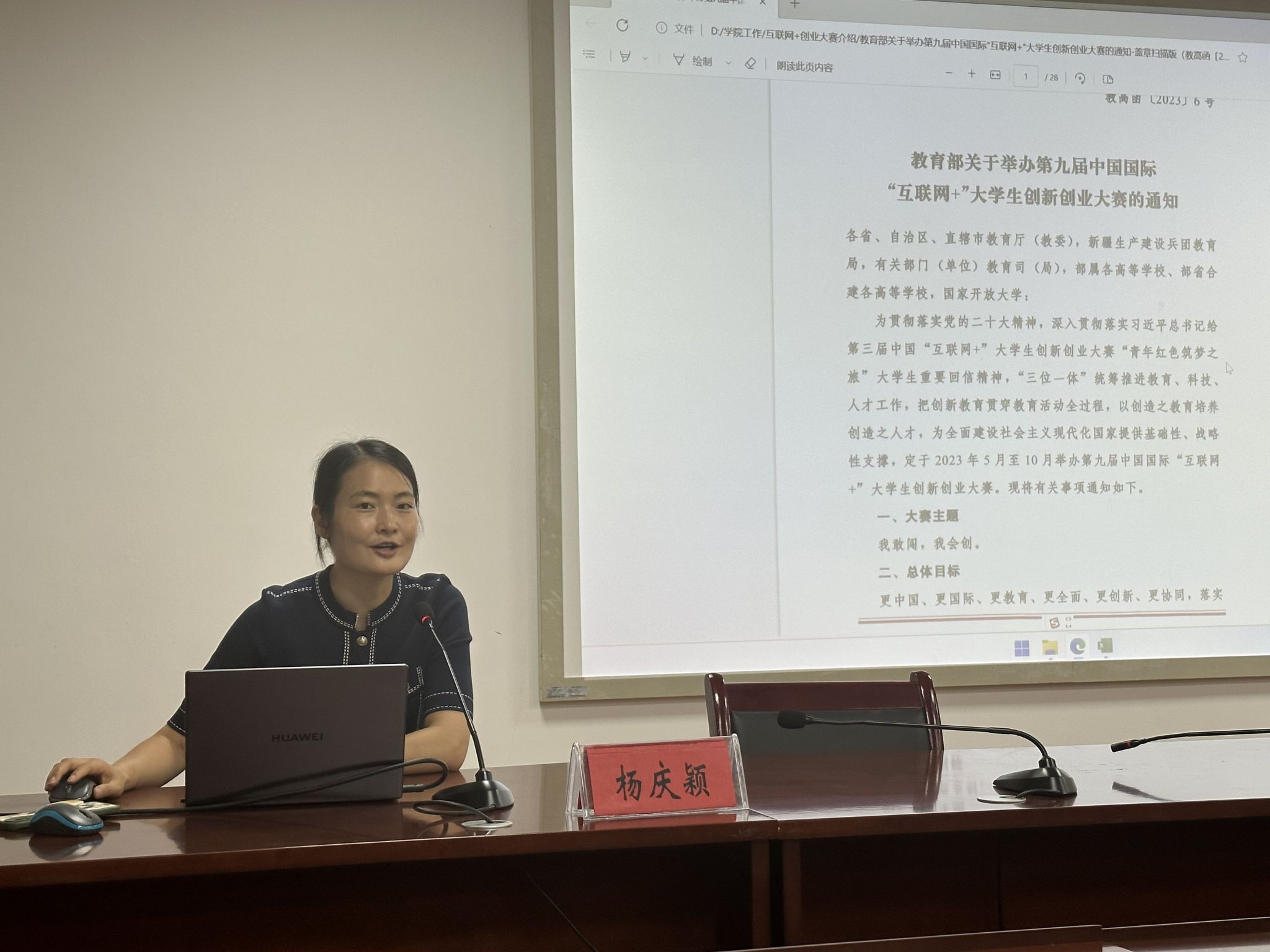 在技能竞赛专题方面,信息技术学院党总支副书记杨庆颖和芮素文老师分别就“互联网+”创新创业大赛、职业院校教师教学能力比赛相关的政策进行了解读,并分享了自身的经验技巧。