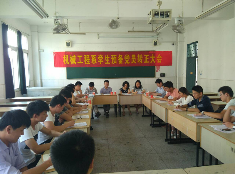2016年7月8日下午,机械工程系第一党支部、第二党支部分别在教2楼202、203教室召开支部大会,讨论古月等26名预备党员的转正问题,各支部党员及申请转正的预备党员参加了会议。