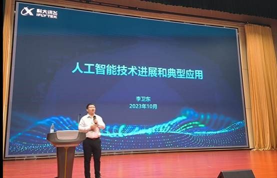 本网讯(信息学院 谢宇) 为普及人工智能知识,提高专业素养,提升师生对人工智能前沿技术的认知,10月11日下午,信息技术学院和科研处联合组织了“人工智能技术进展和典型应用”学术讲座。讲座邀请科大讯飞股份有限公司大数据工程师、高教业务线总裁助理李卫东主讲。讲座由信息技术学院副院长雷惊鹏主持,学校部分教职工以及信息技术学院2023级全体新生参加了本次讲座。