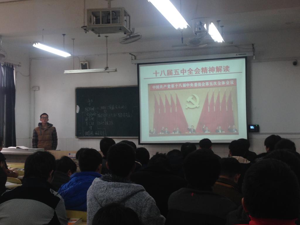 汽车工程系各班主任和辅导员严格按照系部部署,全方位搜集资料,制作多媒体课件,分别采取主题班会、团活动及主题交流发言等不同形式向大学生们详细解读了《党的十八届五中全会公报》、《中共中央关于制定国民经济和社会发展第十三个五年规划的建议》等文件,并重点学习了《党的十八届五中全会公报》和“十三五”规划关于我国发展面临的总体形势、指导思想、目标任务、基本理念和重大举措等内容。