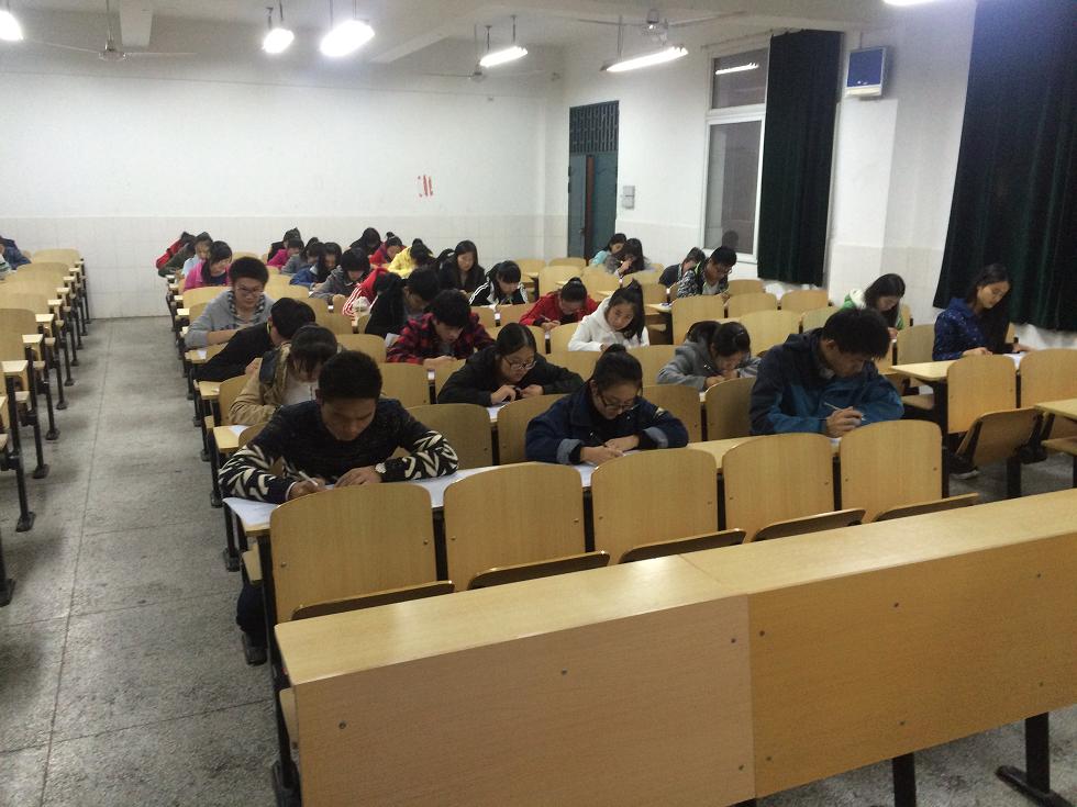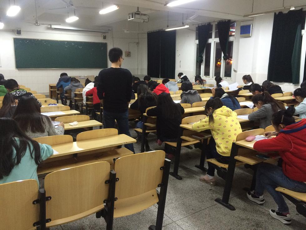 我系党总支于11月3日晚组织全系统一的结业考试,设4个考场,主要由系辅导员和15级班主任负责监考任务。