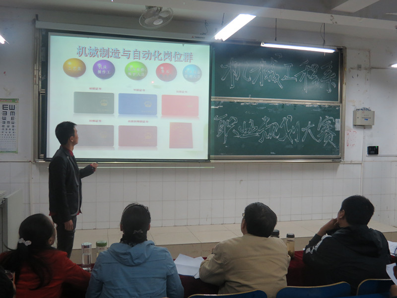 11月4日下午,机械工程系在2教105教室举办了2015大学生职业规划设计大赛暨大学生创业大赛。机械系党总支书记吴方庭,党总支副书记陈思、团总支书记孙策和辅导员张艳华、李从东担任大赛评审。2015级部分学生现场观摩了比赛。