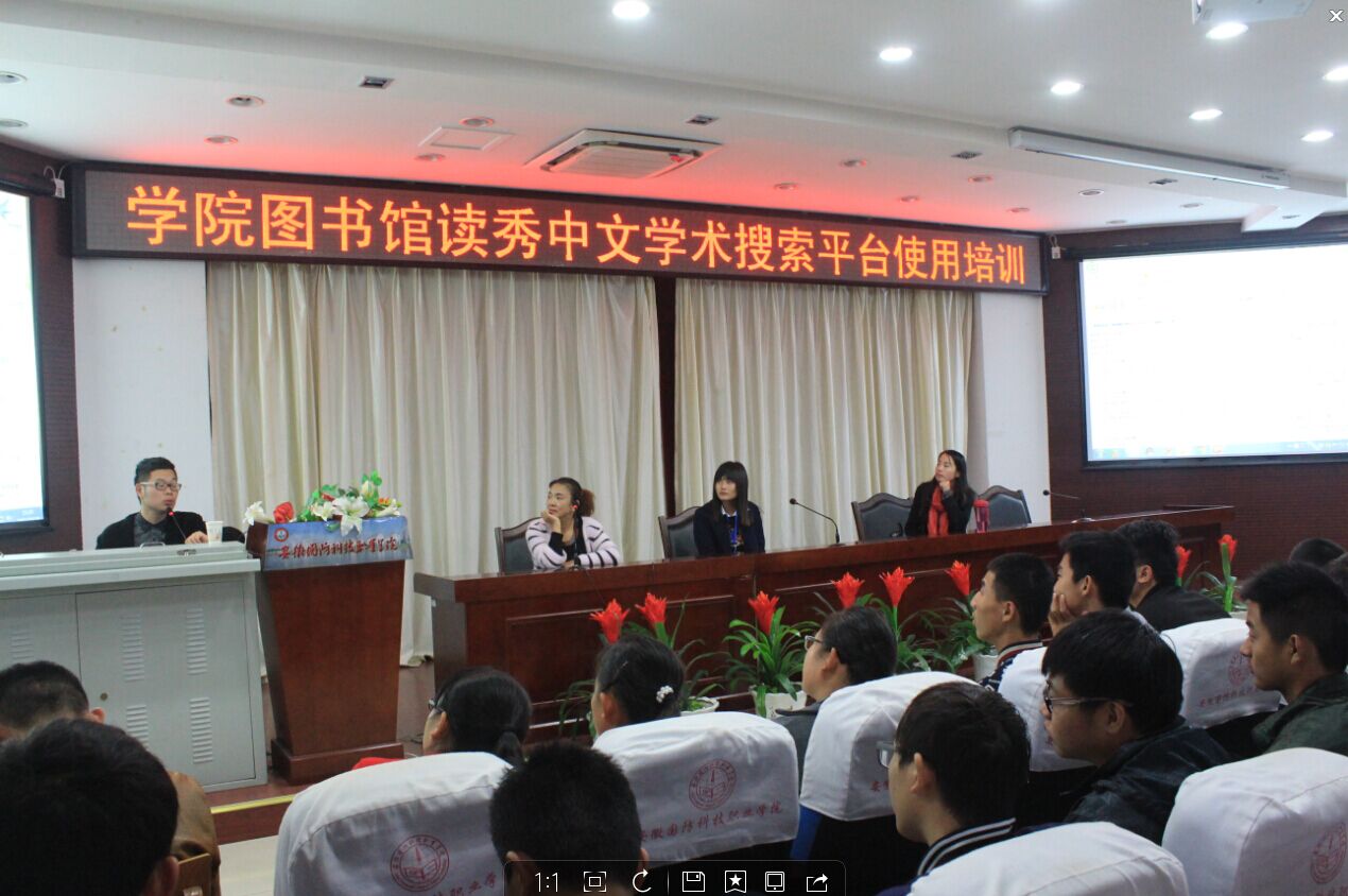 为了帮助师生熟悉“读秀”,充分发挥“读秀”在教学、研究中的作用,10月28日下午,图书馆在报告厅举办了“读秀搜索平台使用”培训。全校共三百多师生参加了本次培训。