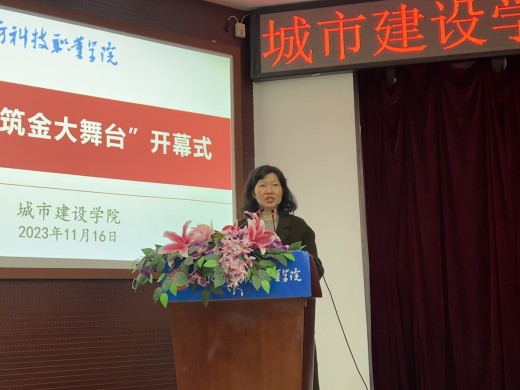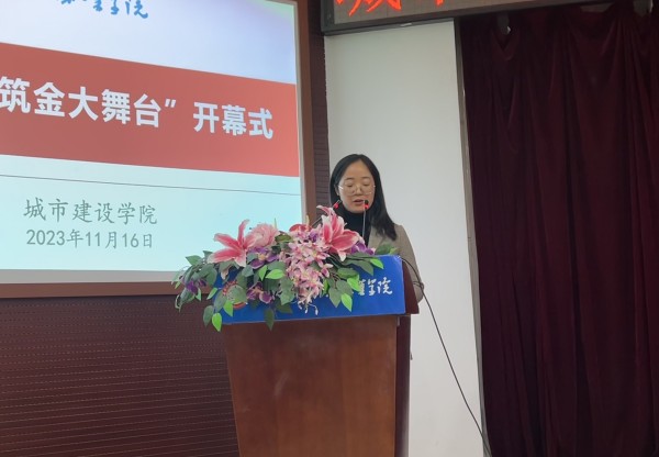王红林为本次活动致开幕词。王红林强调,“筑金大舞台”落实立德树人,坚守为党育人、为国育才使命,落实德智体美劳“五育并举”育人体系,全面深化全员、全过程、全方位“三全育人”综合改革,旨在提高人才培养质量,推动学院文化建设,为广大师生搭建文化平台。她希望,广大师生不忘初心,将加强品牌内涵建设、提升活动质量作为首要任务,将专业文化活动贯穿于教育教学、人才培养全过程,在活动形式、活动内容上不断守正创新,保持大舞台的活力和魅力,在“筑金”大舞台上,施展技能,彰显才华,展示风采。