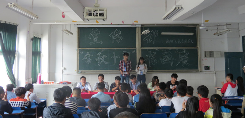 为丰富机械系广大学生的课余文化生活,10月21日由机械系宣传部举办的“金秋十月书画展”在2教205教室正式举行。