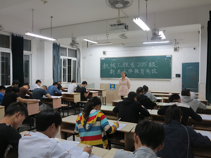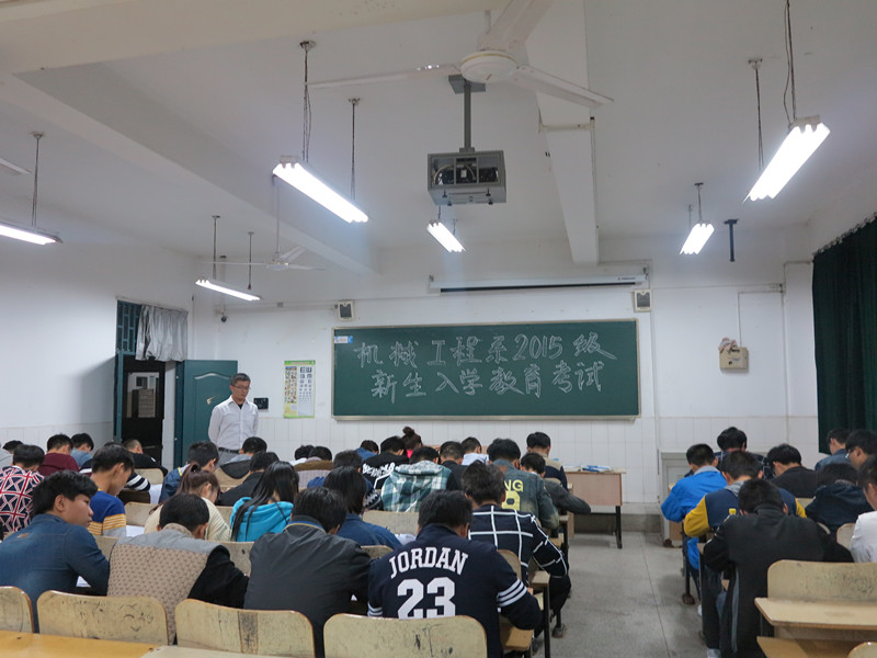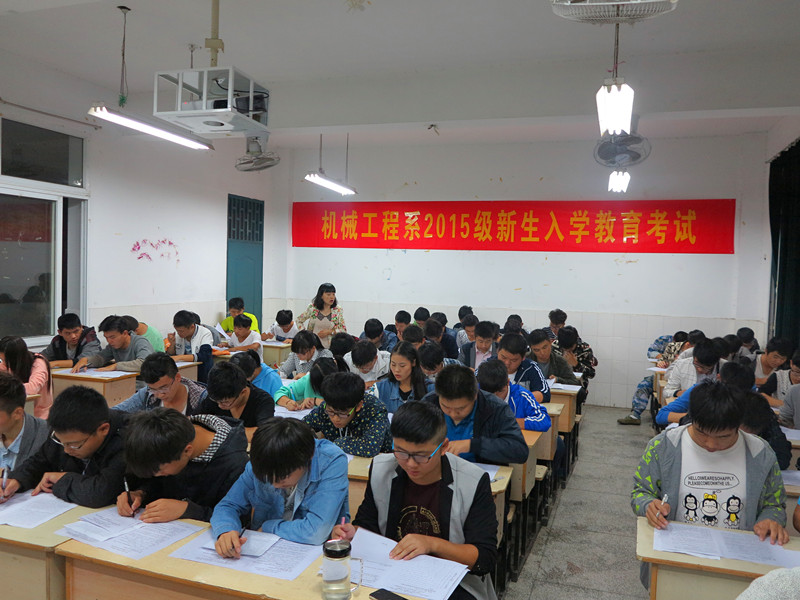 为引导大一新生尽快熟知学校规章制度,培养学生自律意识,加强学生安全教育和日常管理工作,机械系于10月19日晚,在2号教学楼举办2015级新生入学教育考试。
